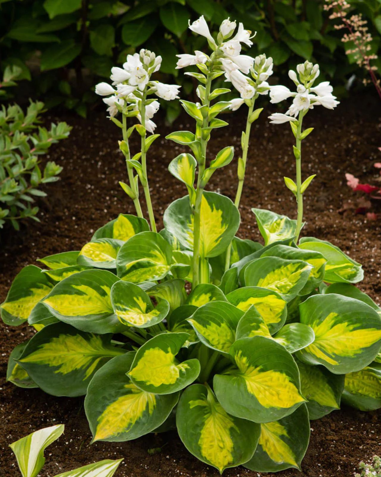 TOP šķirne. Vidēja izmēra hosta. Balti ziedi. Augums 45 cm.
