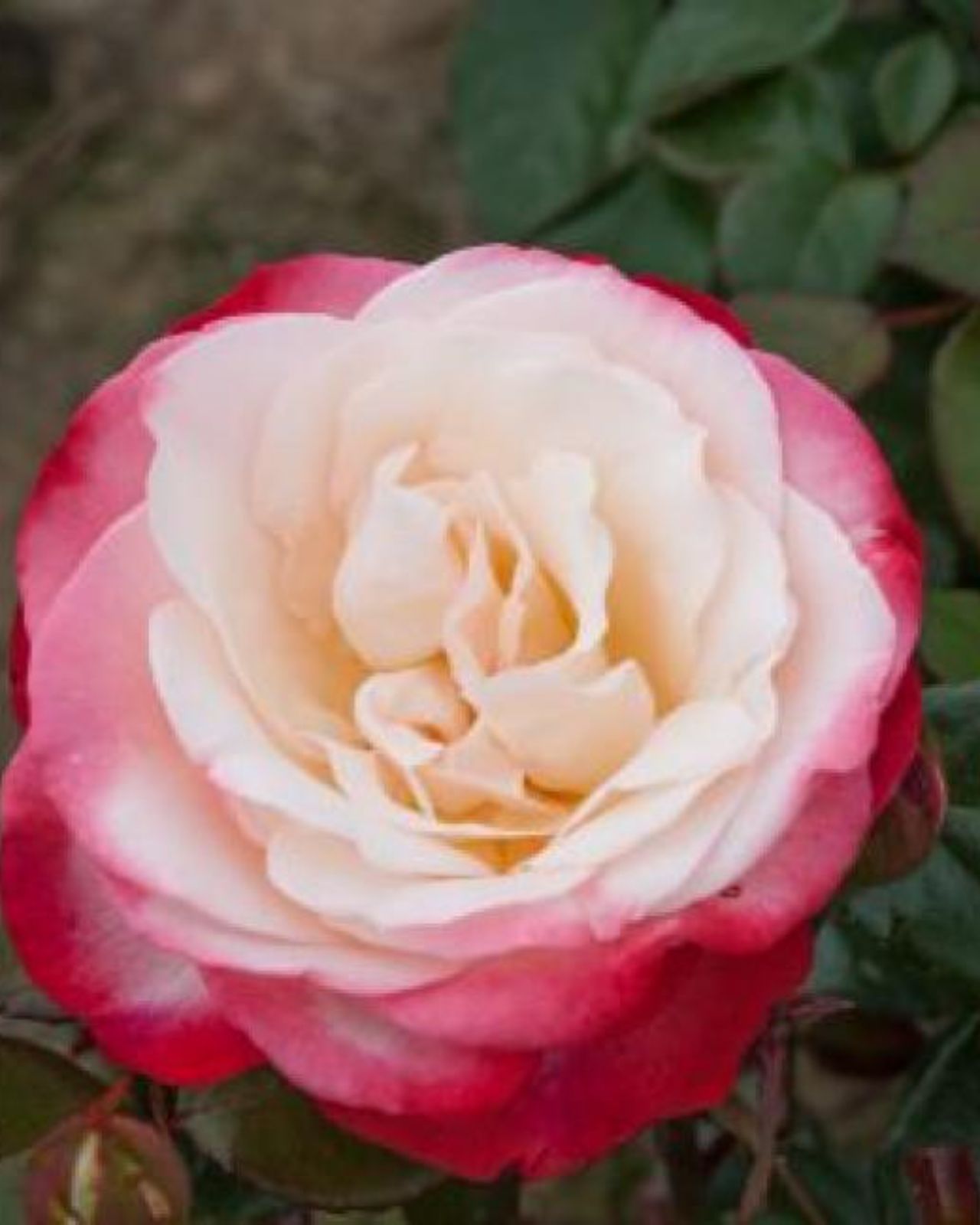 Pildīts balts zieds kuram arējās ziedlapas ir ķiršu sarkanā krāsā. Atkārtota ziedēšana. Piemērota arī griezto ziedu ieguvei, ilgs vāzes mūžs. Laba slimībizturība. Divgadīgs kailsaknis. Potēts!